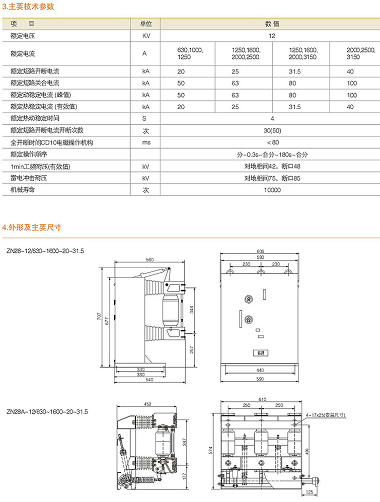 VS1(ZN63)-12 固封式户内高压真空断路器
