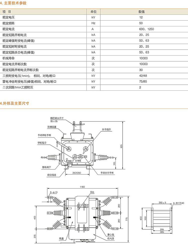 VS1(ZN63)-12 固封式户内高压真空断路器